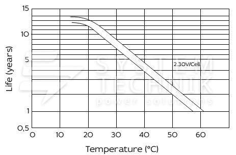 - Срок хранения без подзаряда: 6 мес. при 25°C;