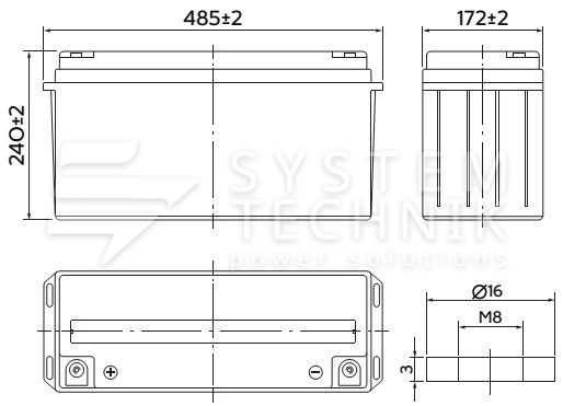 - Срок хранения без подзаряда: 6 мес. при 25°C;