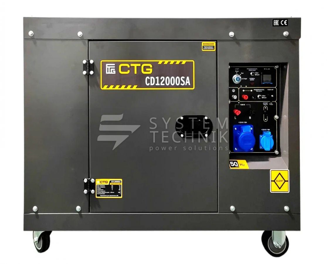 - Дизельный генератор CTG CD12000SA с АВР в кожухе