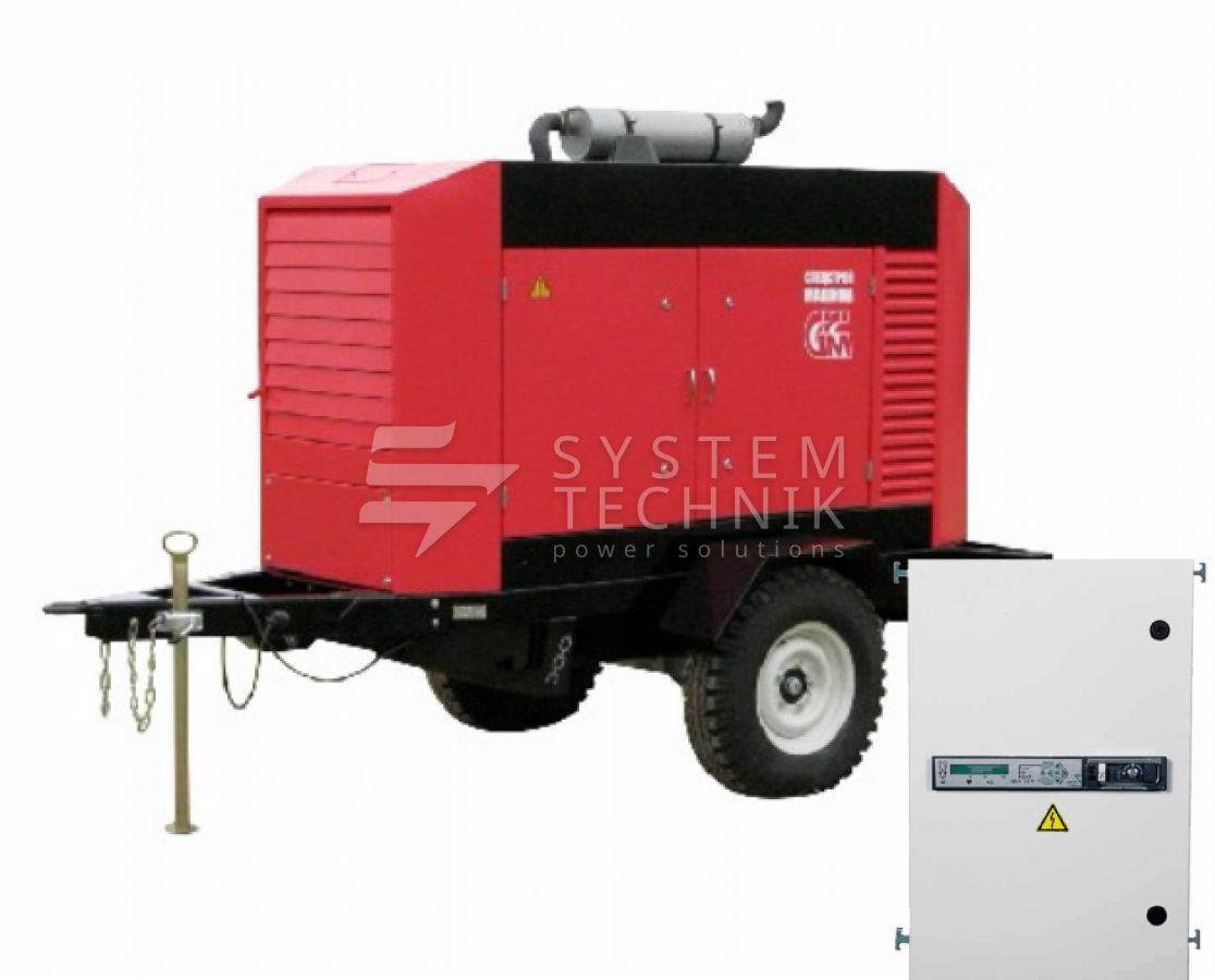 - ССМ ЭД-60-Т400-2РКМ1 в шумозащитном кожухе на шасси с АВР на прицепе